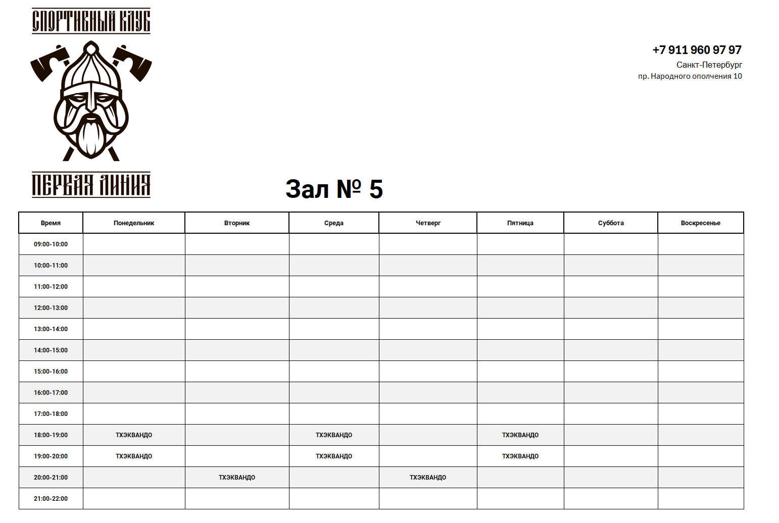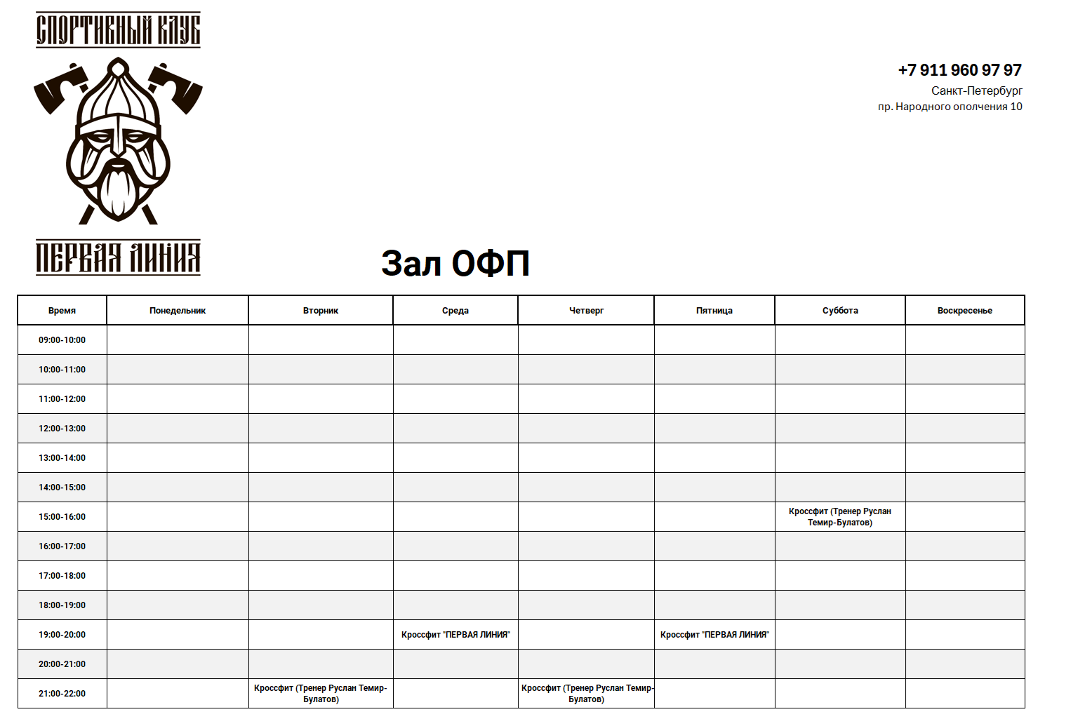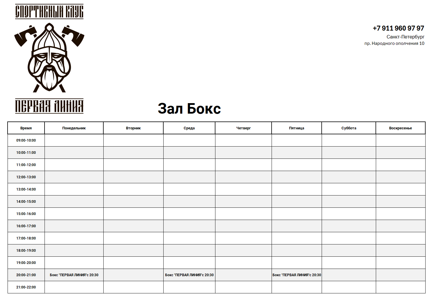 Время;Понедельник;Вторник;Среда;Четверг;Пятница;Суббота;Воскресенье